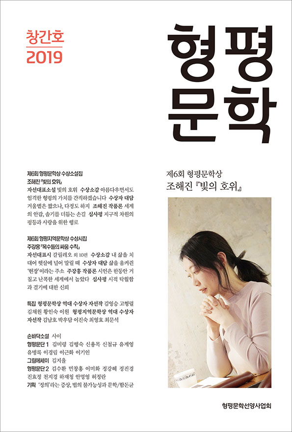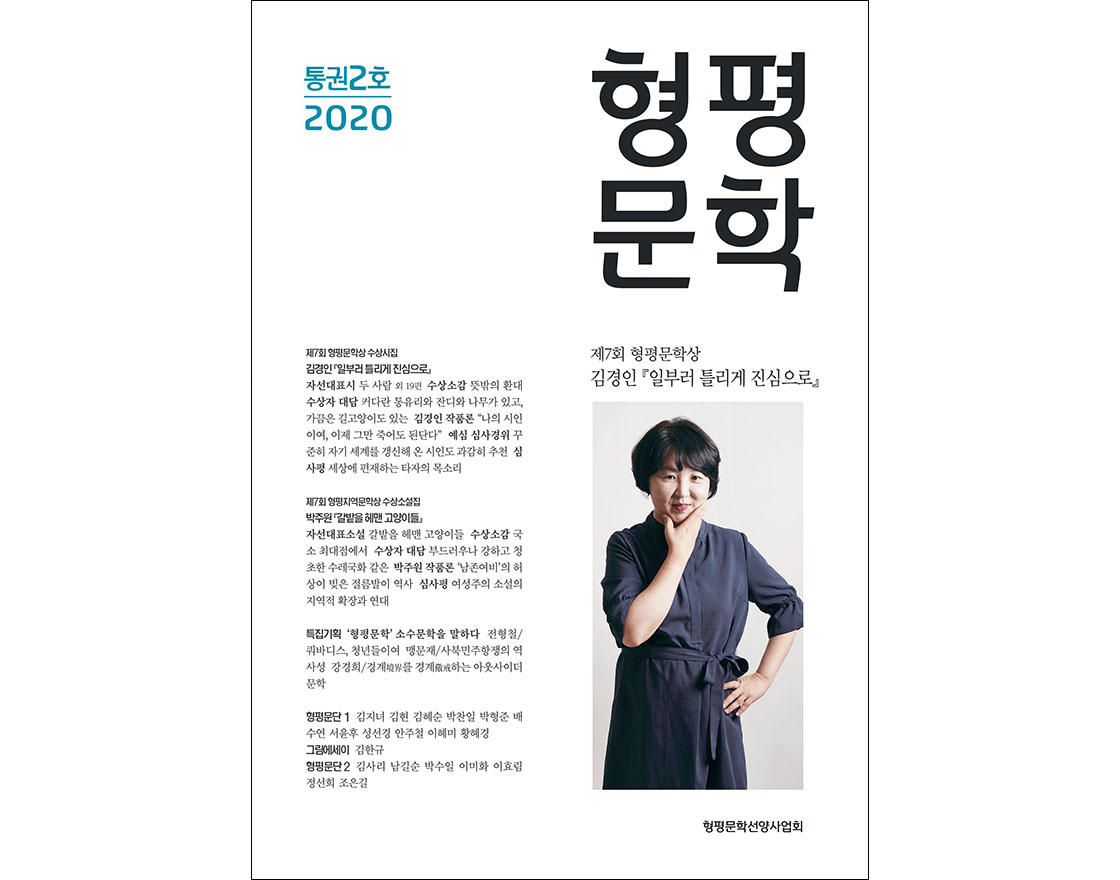 코로나 19 감염증으로 인해 유례없는 ‘거리두기’가 진행되고 있습니다. 그러나 사실 우리들은 문학 안에서 ‘따로 함께’ 연대해오고 있었습니다. 이 문학적 연대의 형식은 언어이고, 그 내용은 사랑과 형평이며, 그리고 그 길은 모두의 행복한 삶을 향해 나있습니다. 사랑의 문학, 형평의 문학이 이 진주로부터 널리 퍼져나가기를 기원하며, 『형평문학』 2집을 발간합니다.